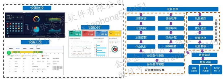設(shè)備運維:完成對設(shè)備運維全生命周期的管理,包括設(shè)備臺帳、點檢、保養(yǎng)、維修、改造、報廢以及備品備件管理