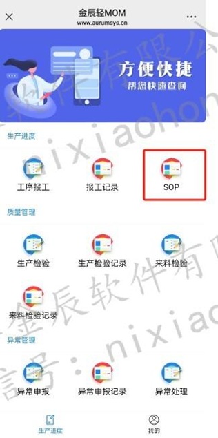 SOP分為兩種:檢驗SOP和加工SOP,檢驗SOP在來料檢驗單跳轉(zhuǎn),加工通過掃描工序計劃單進行查詢;