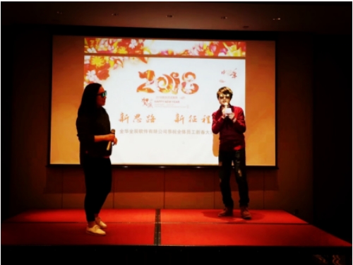 2018年2月8日,會場設(shè)在金華原素酒店2樓,公司40多人參加年會。會上,總經(jīng)理李劍忠先生圍繞“新思路 新征程”作了主題講話,解讀金辰公司的發(fā)展、現(xiàn)狀和未來,給全體員工帶來力量和信心,同時(shí)公司副總李家駒先生與倪小紅女士也對2017年所取得的成績、獲得的成功做了詳盡的總結(jié),并對交付與服務(wù)進(jìn)行了開拓性的展望。