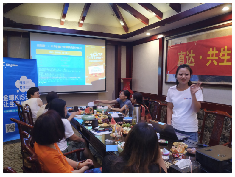 本次活動(dòng)共吸引來(lái)自金華市區(qū)的中小微企業(yè)用戶超過(guò)20多人家客戶參與,金蝶蝶金云計(jì)算有限公司浙江省區(qū)渠道事業(yè)部霍偉偉先生、金華金辰軟件有限公司副總倪小紅女士參加了此次活動(dòng)。活動(dòng)一開(kāi)始,由金華金辰軟件有限公司副總經(jīng)理倪小紅女士開(kāi)場(chǎng)致辭。倪小紅女士向客戶簡(jiǎn)單介紹了當(dāng)下上云的必要性以及重要性。