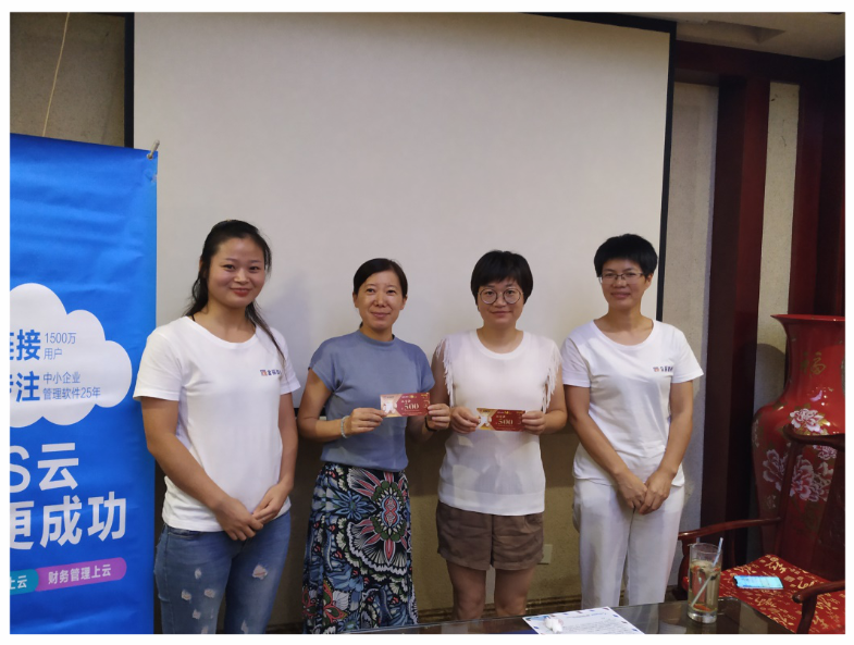短暫的休息過(guò)后,由金華市金辰軟件公司王珺女士詳細(xì)解讀云普惠的優(yōu)惠政策??蛻魪膬r(jià)格上直接感受到云產(chǎn)品的優(yōu)勢(shì),開(kāi)展熱烈討論。 這一環(huán)節(jié)結(jié)束后,由王珺女士抽出兩個(gè)二等獎(jiǎng),一一為客戶送上獎(jiǎng)品。
