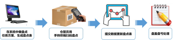 倉庫做好盤點準備后,手持射頻感應(yīng)PDA設(shè)備,在倉庫轉(zhuǎn)一圈,自動感應(yīng)倉庫產(chǎn)品信息、產(chǎn)品數(shù)量,提交后自動完成盤點數(shù)據(jù),盤點完成。