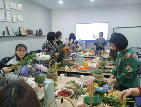 每一位女神都沉浸在自己的花藝世界,她們的認(rèn)真勁兒一點也不輸給專業(yè)花藝師?;顒有路f而有趣,現(xiàn)場的氛圍融洽而歡樂。在一片花海中,參加活動的每位女神臉上都洋溢著滿足和喜悅的笑容,沉浸在其樂融融的氣氛里。
